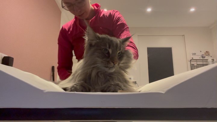 Een behandeling duurt maximaal 45-60 minuten, afhankelijk van de vachtproblemen en hoe goed de kat het toelaat. Ik werk niet met allerlei dwangmiddelen maar blijf goed naar de kat kijken en werk vooral met veel liefde. De kat is bij mij koning :-)